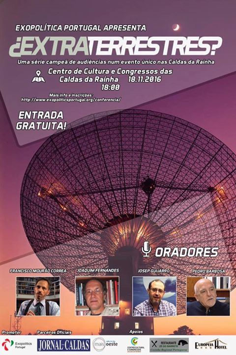 No dia 18 de Novembro irá realizar-se, nas Caldas da Rainha, uma conferência organizada pelo grupo Exopolítica Portugal, que vai debater o tema extraterrestres!